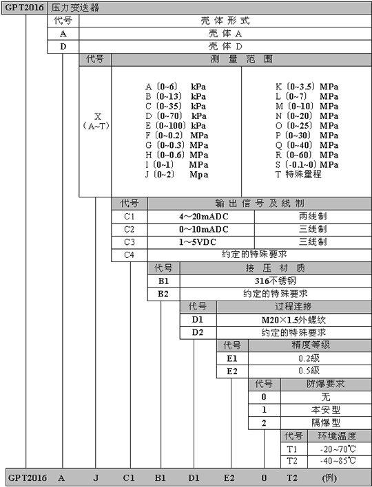 GPT2016AJAC1B1D1E20T2。選殼體D時,無隔爆型產品。