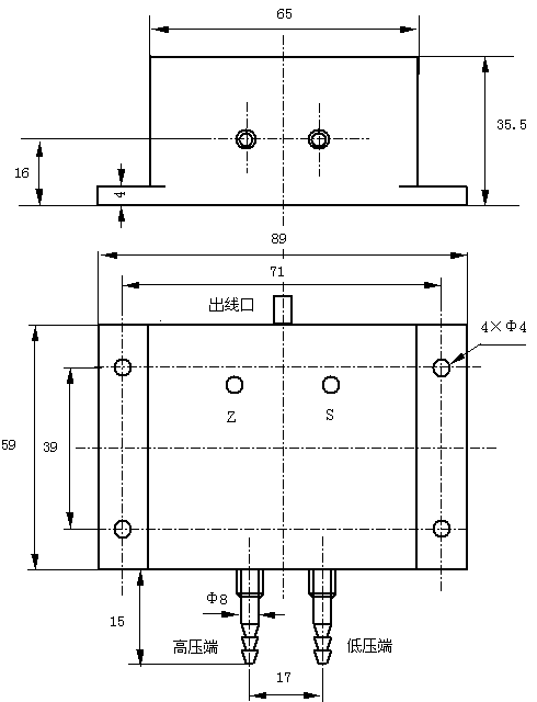 8、外形尺寸、開孔尺寸:(見風壓變送器外形示意圖)